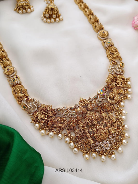 Bridal Temple Gold and Pearl Drop Long Haram