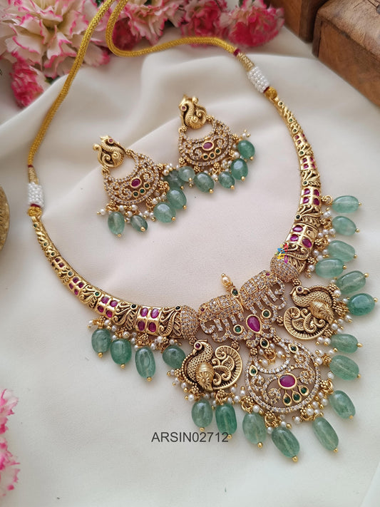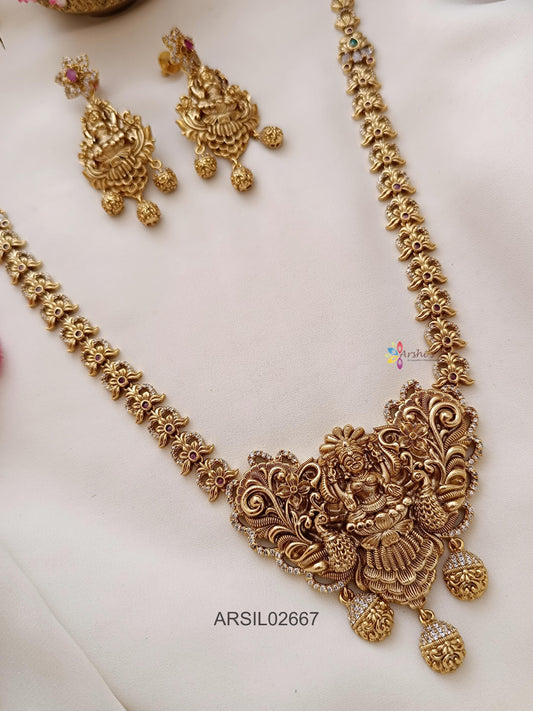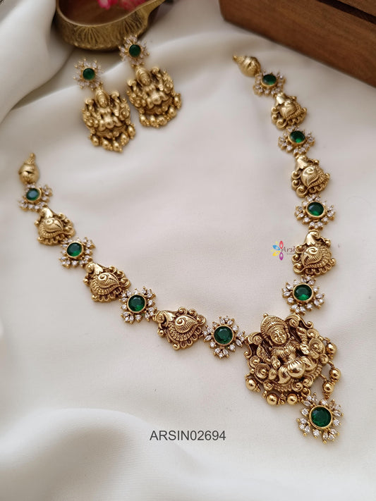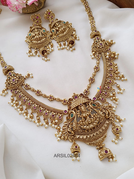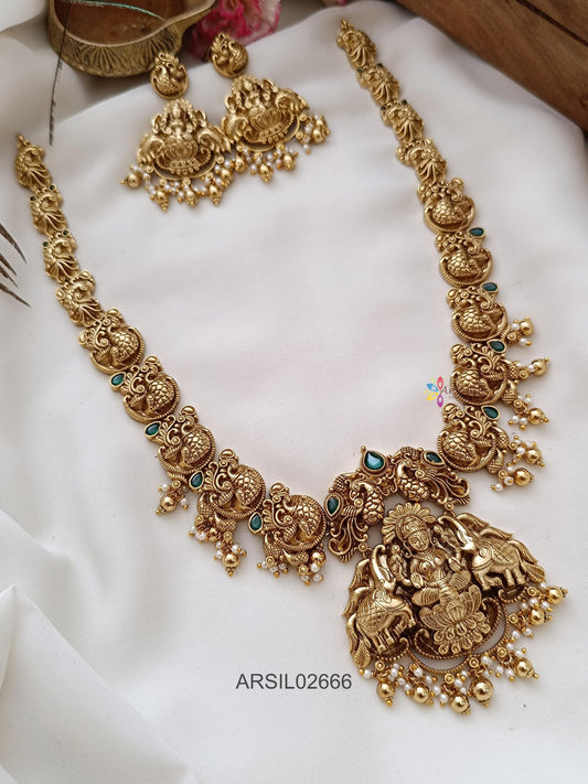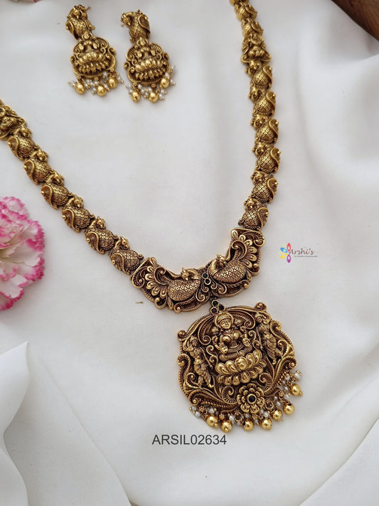 Antique Peacock and Lakshmi Pearl Drops Necklace