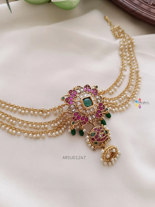 Leaf Design Stone Hair Brooch with Pearl Chain