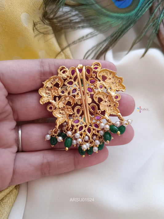 Peacock Design Hair Brooch with Pearl Layer Chain