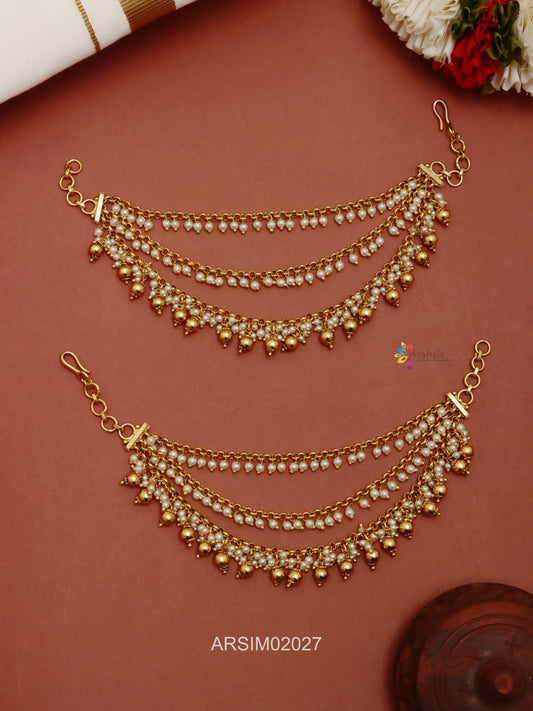 Kemp Stone with Jhumki Drop Pearl Layer Hair Brooch