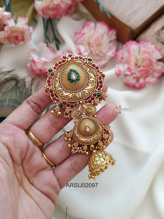 Two Layer Kemp Stone with Jhumka Hair Brooch
