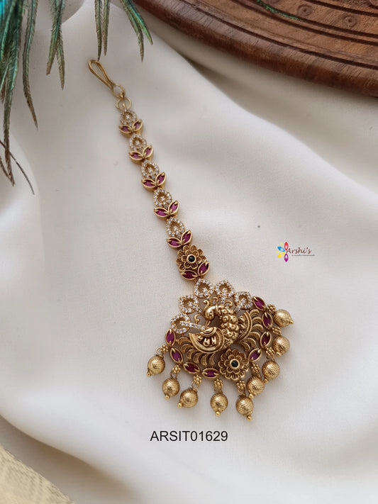 Sold outLakshmi and Peacock Kemp Maangtikka