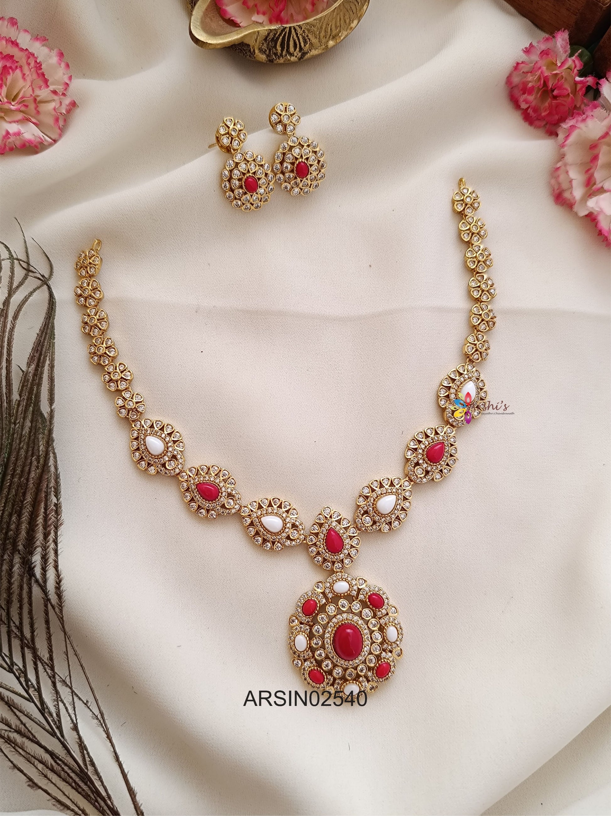 Necklace length: 15cm, Earring length: 3cm