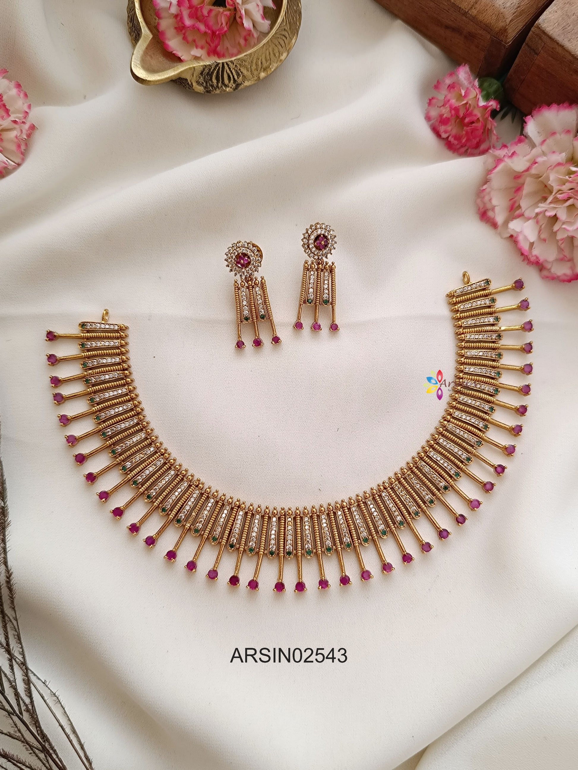 Turn heads with this bold Designer Spike Kemp Stone Necklace! Featuring radiant red Kemp stones set in an edgy spike design, it beautifully blends traditional charm with modern drama—perfect for statement ethnic looks.