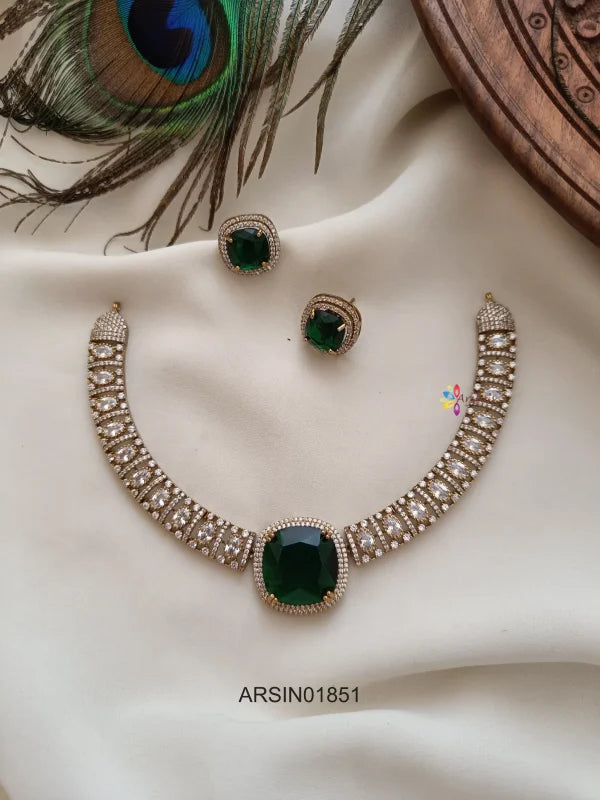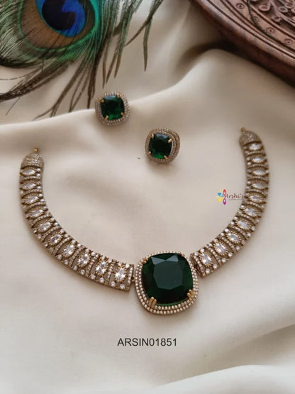 The Emerald Stone Neckset exudes elegance with its vibrant green stones, beautifully set to create a timeless look. Perfect for special occasions, this piece adds sophistication and charm to any attire.
