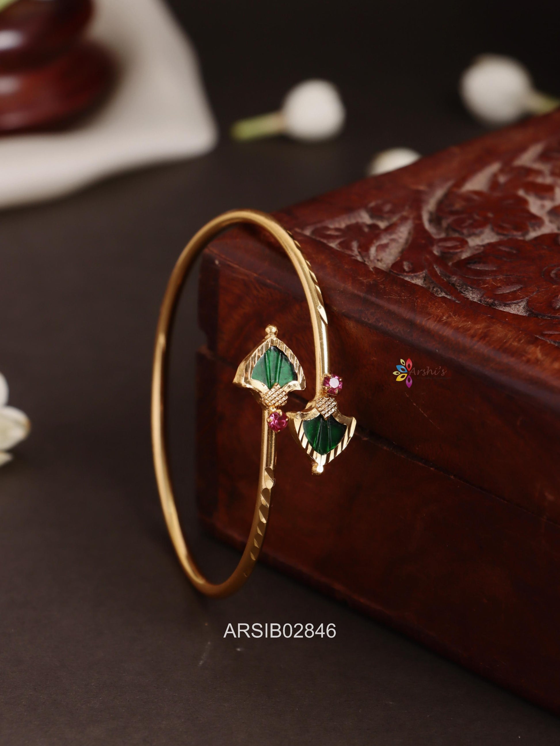 Beautiful Green Palakka Bracelet adorned with intricate gold work and vibrant green stones. Perfect for weddings, festivals, or traditional occasions, it adds elegance, charm, and timeless South Indian sophistication.