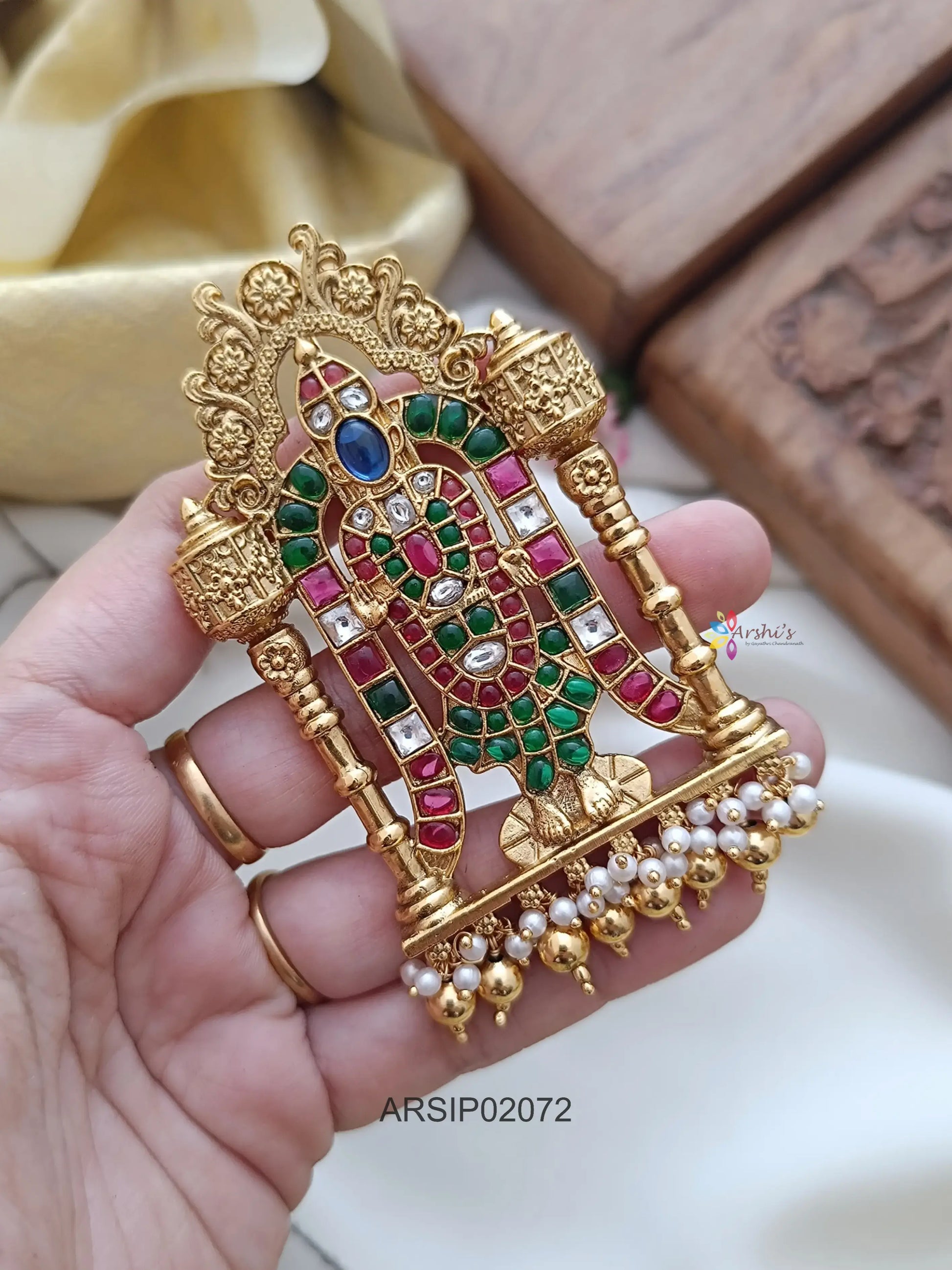 This exquisite Jadau Kundan Shri Vittal pendant features intricate craftsmanship, adorned with radiant kundan stones. A symbol of devotion and elegance, it adds a divine touch to any traditional or festive ensemble.