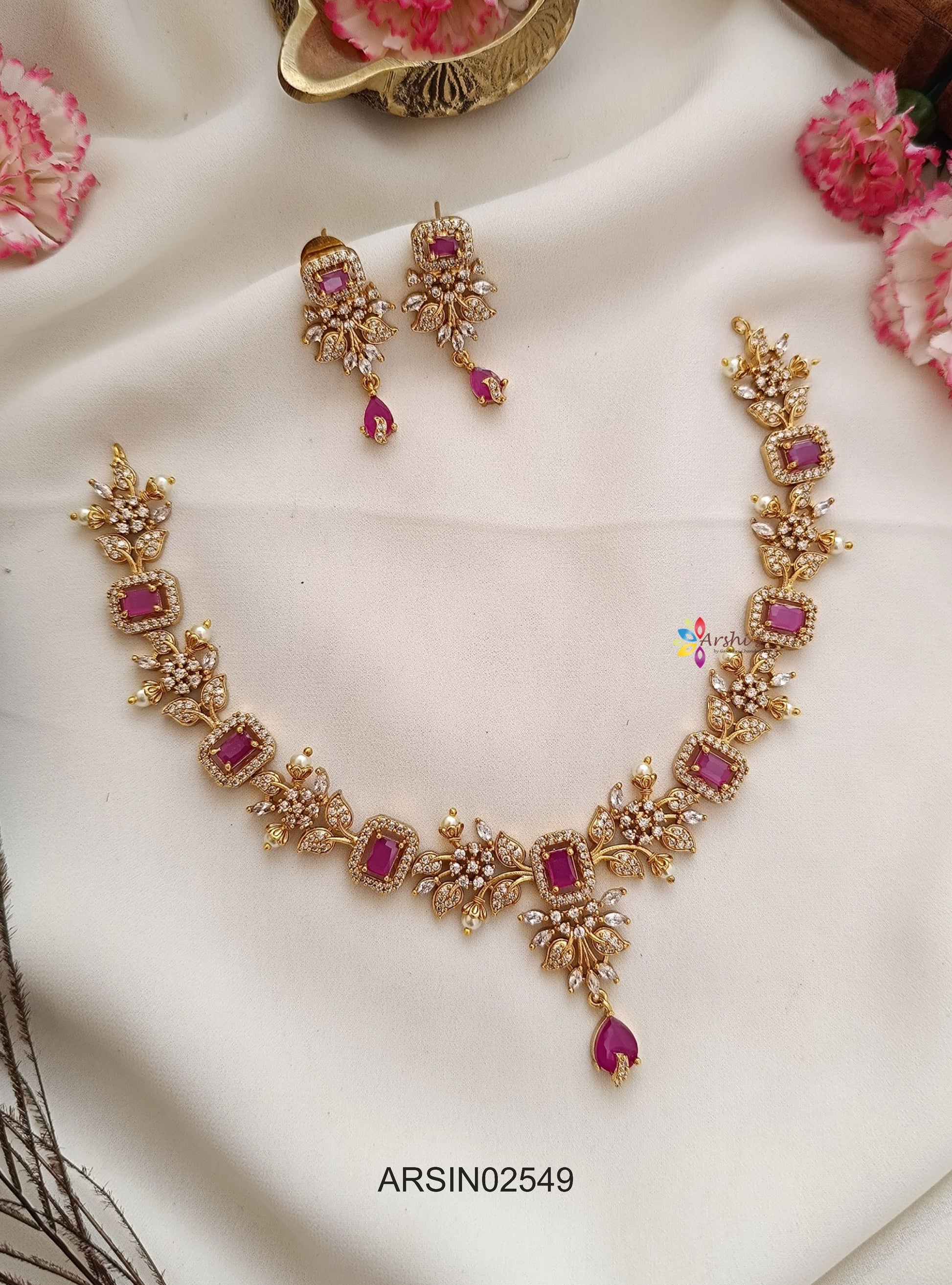 This Kemp Stone Flower Design Necklace showcases vibrant red and green stones arranged in an elegant floral pattern. Perfect for festive occasions, it pairs beautifully with traditional silk sarees and half-sarees.