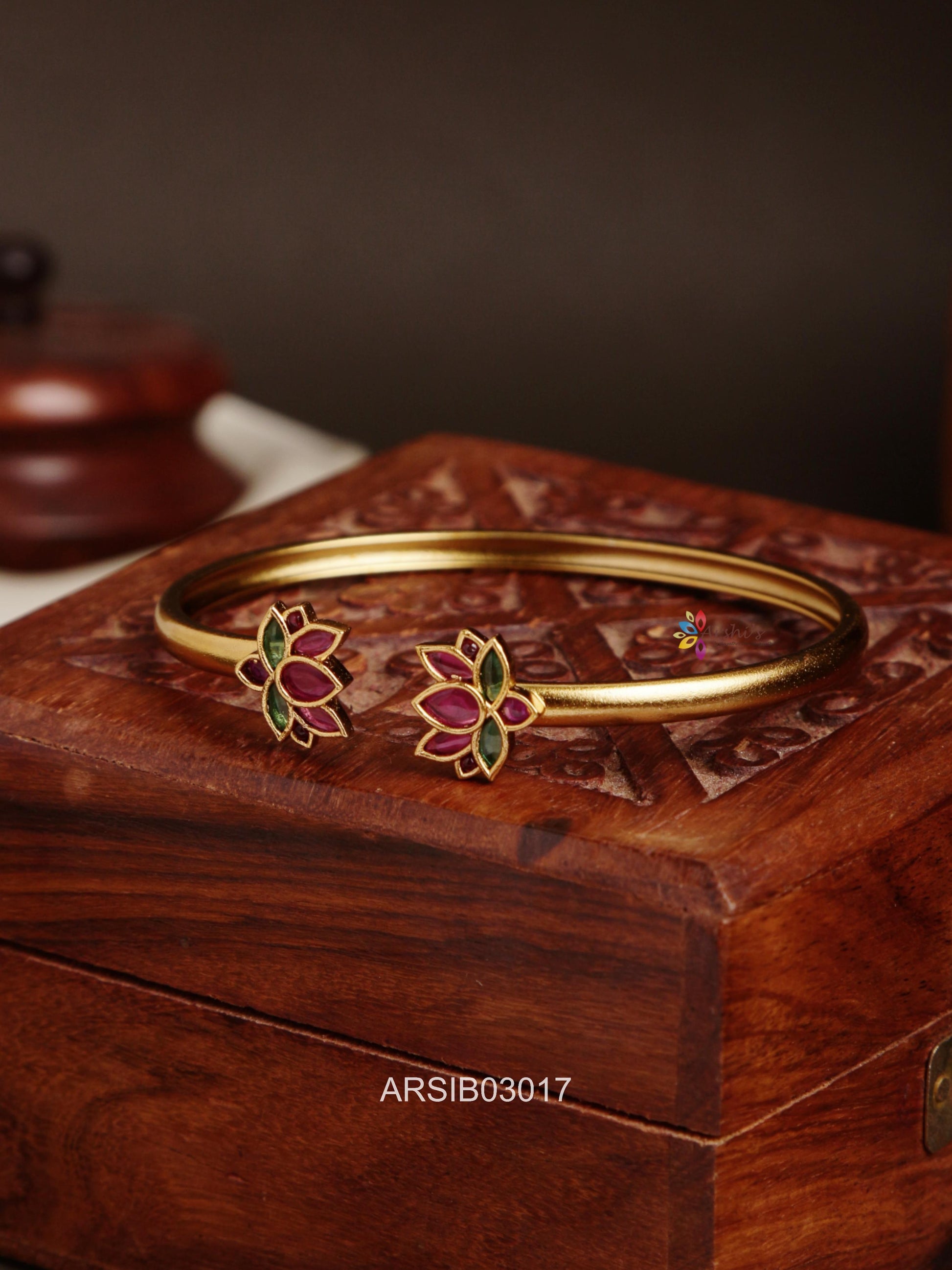 Lotus design bracelet featuring graceful floral detailing, elegant curves, and a shimmering finish. A timeless accessory that blends tradition with modern charm, perfect for elevating festive, ethnic, or everyday stylish looks.