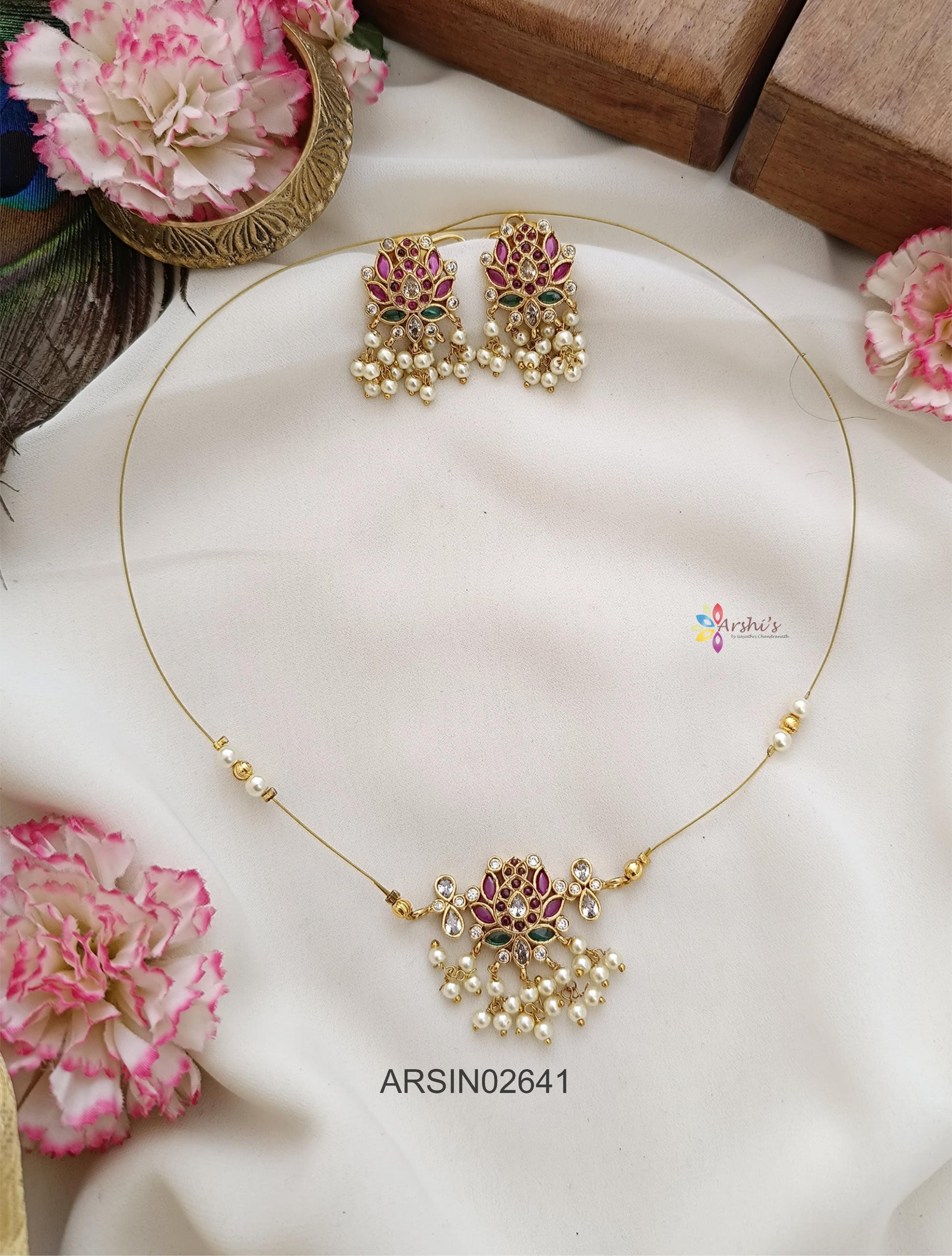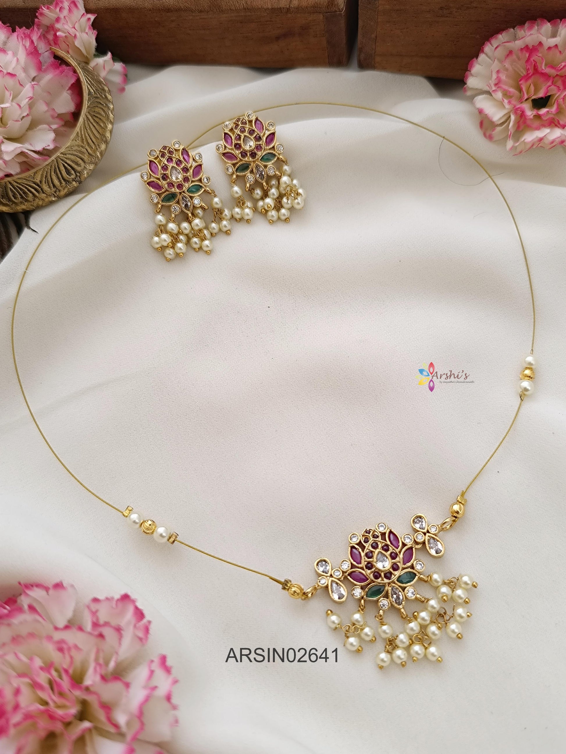 This lotus pendant invisible necklace symbolizes purity and grace. Featuring a delicate lotus motif suspended seamlessly, it creates a floating effect, making it a serene and stylish choice for both traditional and modern looks.