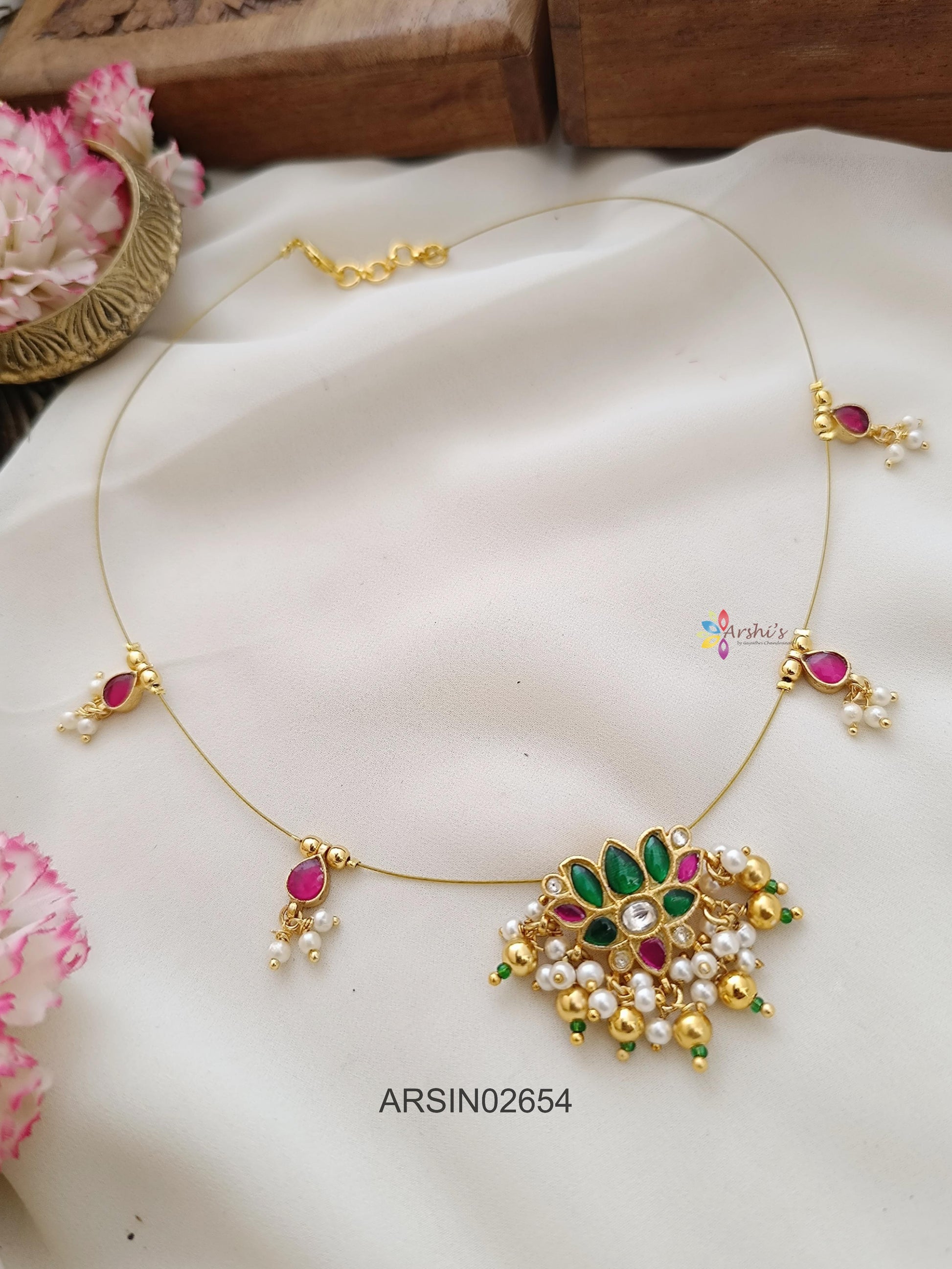 This Lotus Pendant Invisible Necklace radiates elegance with its delicately crafted lotus design, symbolizing purity and grace. The invisible chain enhances the pendant’s charm, making it a perfect choice for festive or traditional occasions.