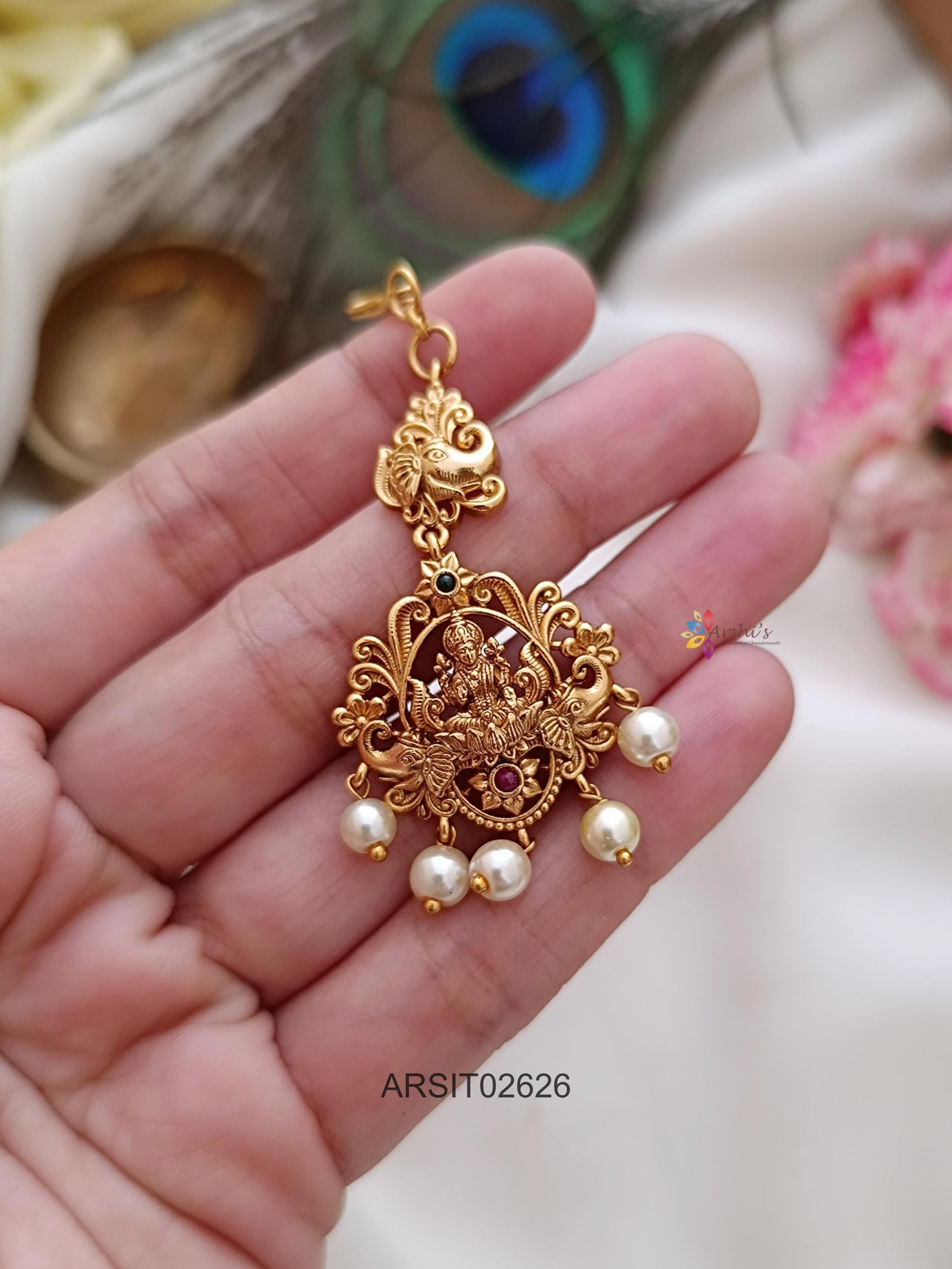 This Matte Temple Maangtikka exudes divine elegance with its antique finish and intricate temple-inspired motifs. A perfect pick for brides and festive looks, it adds cultural richness and traditional beauty to any ensemble.