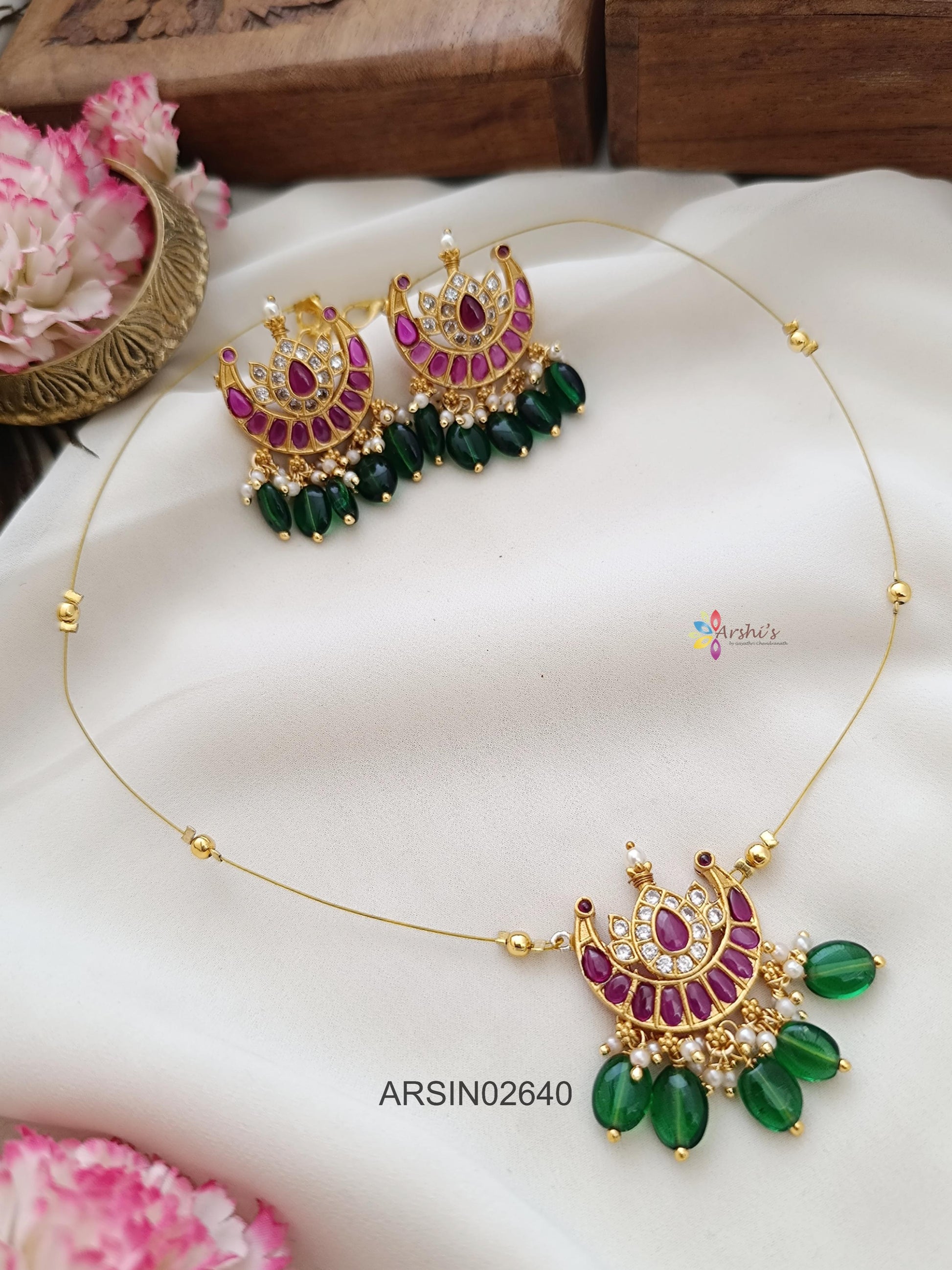 This moon stone pendant green beads invisible necklace blends elegance and charm. The luminous moon stone shines at the center, while delicate green beads add freshness, creating a graceful accessory for festive and everyday wear.