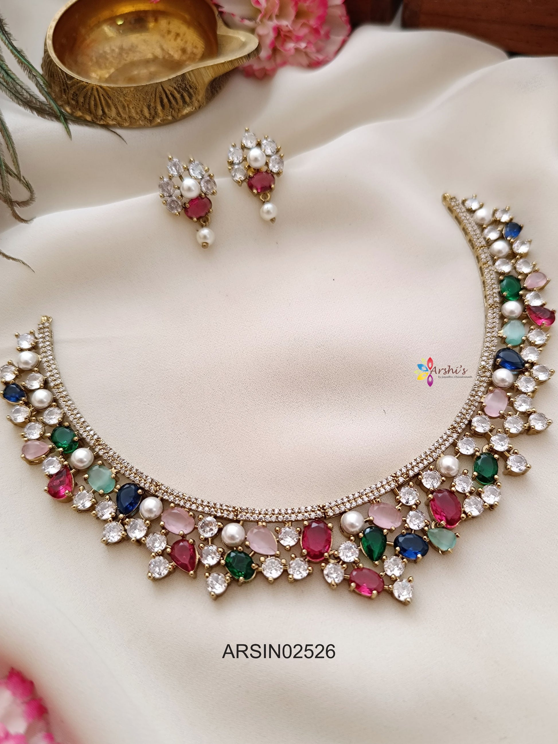 This Multi Color Stone Necklace is a vibrant celebration of hues and heritage. Adorned with an array of colourful stones, it adds a playful yet elegant touch to any traditional or festive outfit.