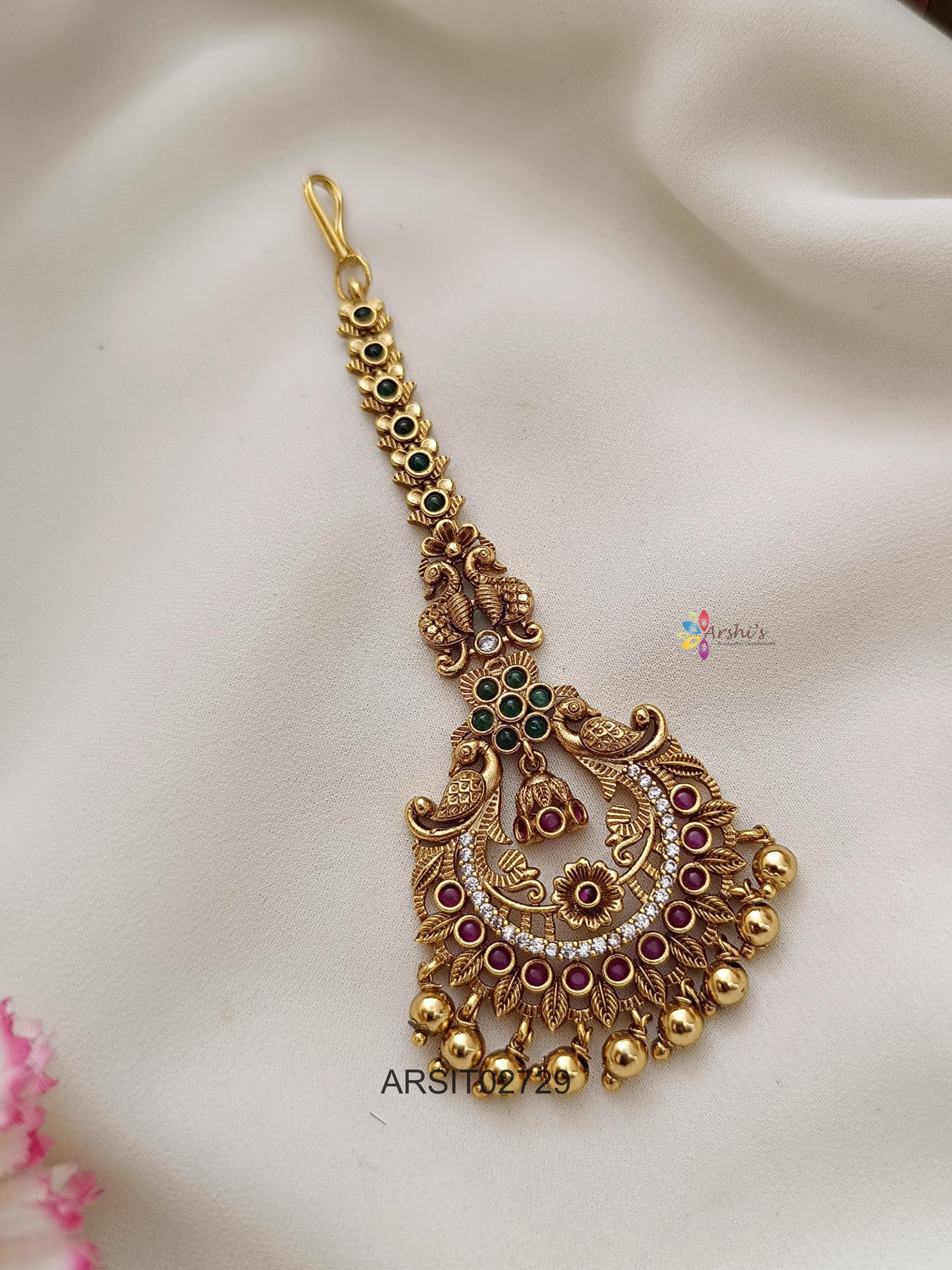 Elevate your traditional style with this Peacock Design Maangtikka, adorned with intricate craftsmanship and colorful stones. Ideal for weddings, festive occasions, and cultural celebrations, it adds a graceful, regal touch to your ethnic attire.