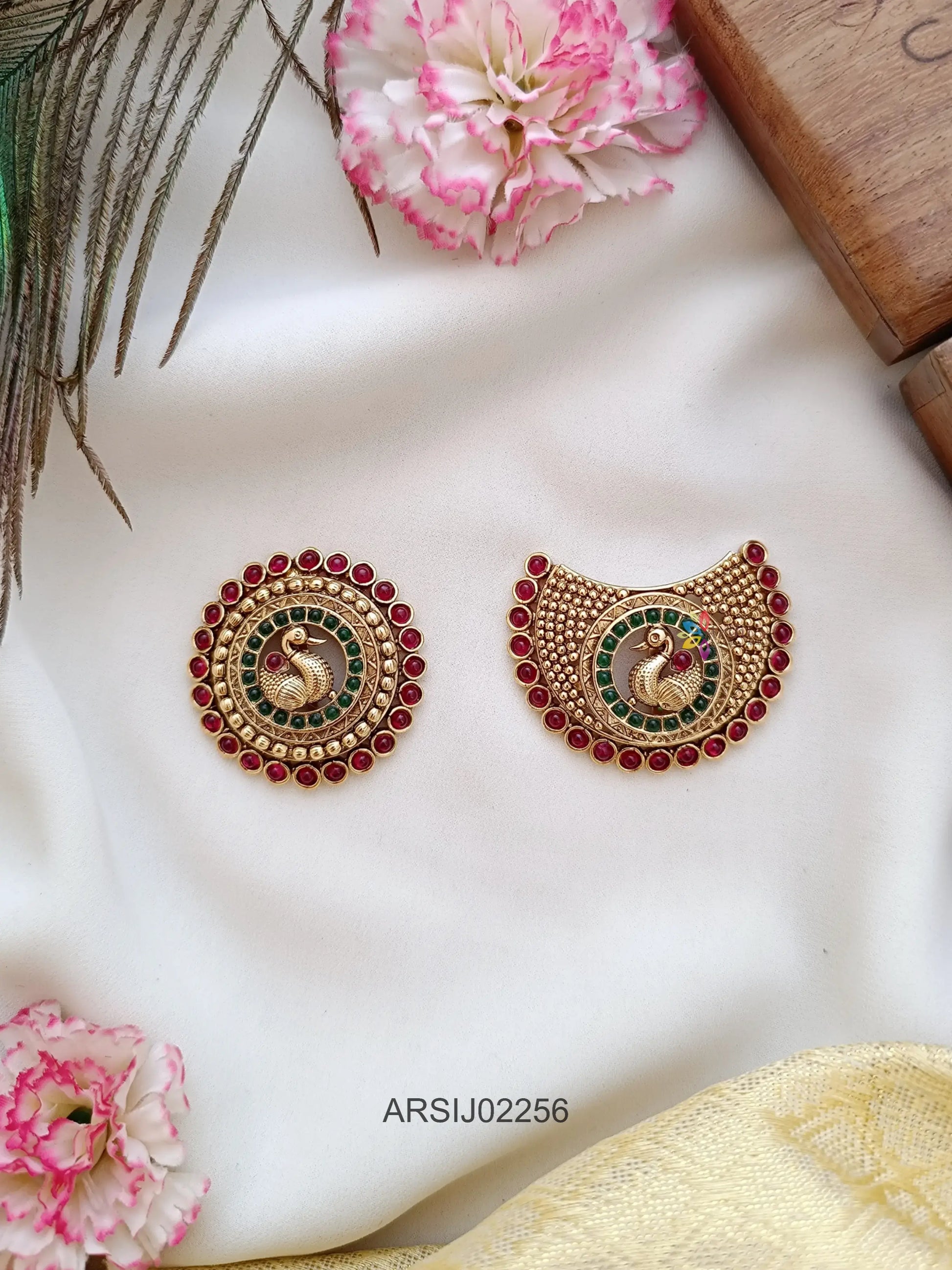 Peacock Sun and Moon Hairbrooch features a blend of peacock, sun, and moon motifs in a single design. Suitable for traditional wear, it adds a symbolic and elegant touch to hairstyles.