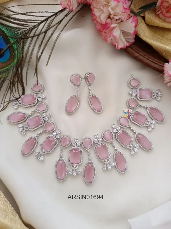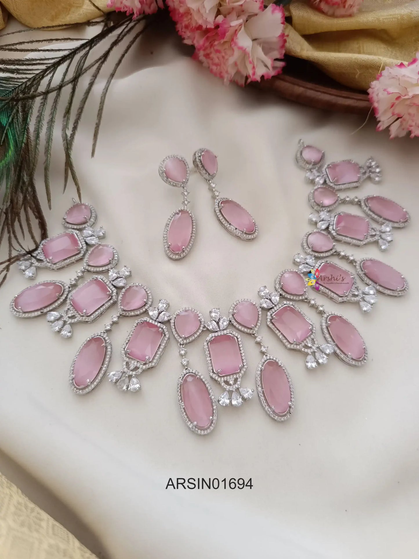 This Rectangle and Oval Pink Stone Necklace features a harmonious blend of rectangular and oval-shaped pink stones, beautifully arranged in an eye-catching design. The delicate pink hues add a touch of femininity and elegance, perfect for both special occasions and everyday wear.