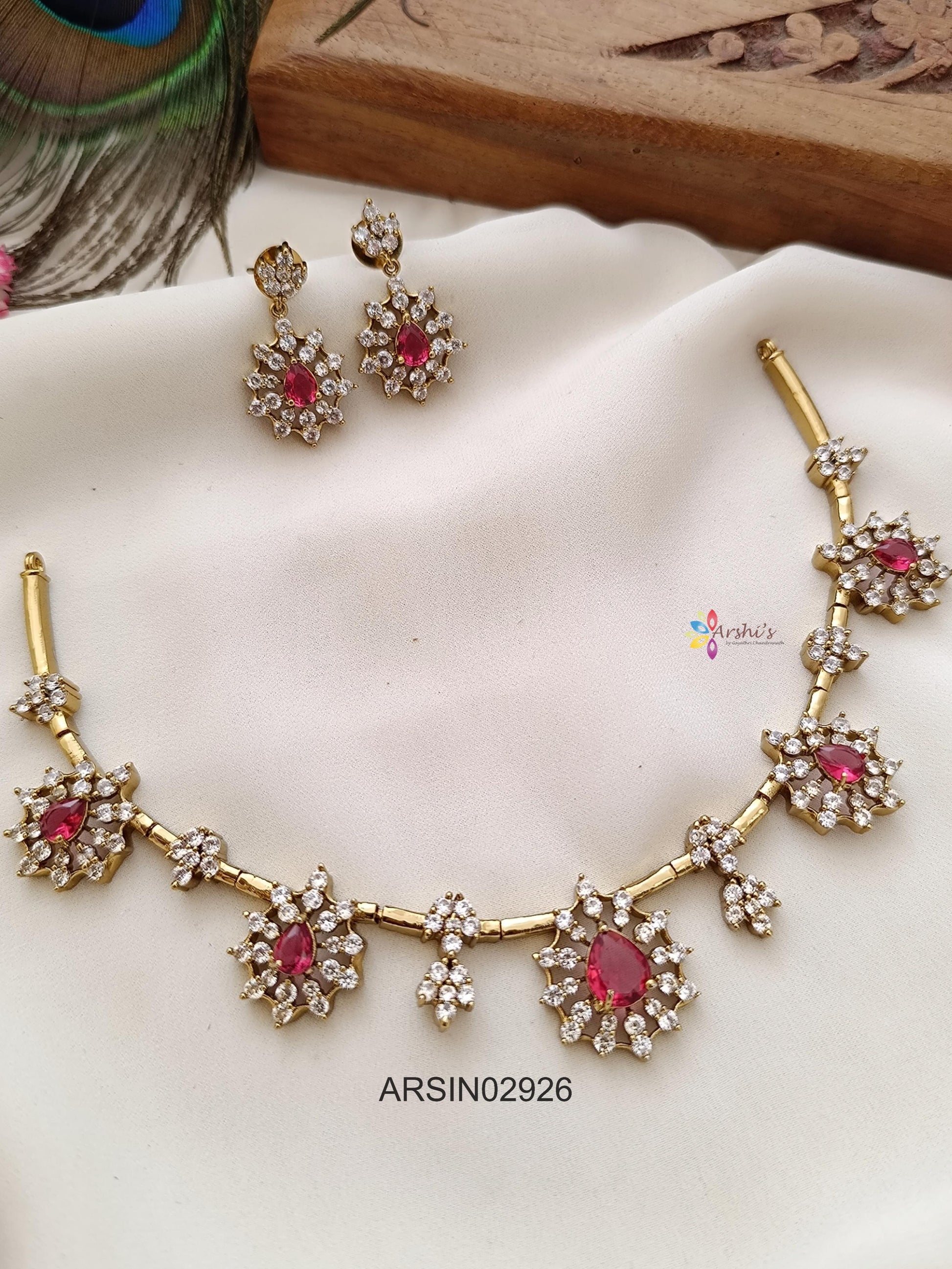 Ruby and AD Stone Hasli Necklace featuring rich ruby tones paired with sparkling AD stones on a sleek hasli frame. Elegant, regal, and perfect for festive sarees, bridal looks, and traditional celebrations.
