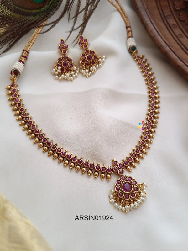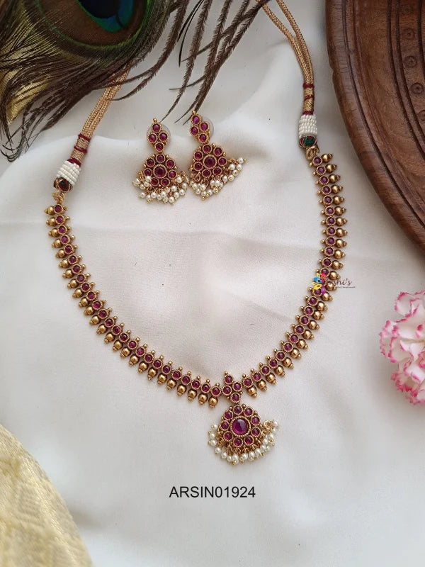 Enhance your look with the Simple Kemp Stone Necklace. Featuring vibrant red and green Kemp stones in a sleek design, it's perfect for adding a traditional touch to any outfit effortlessly!