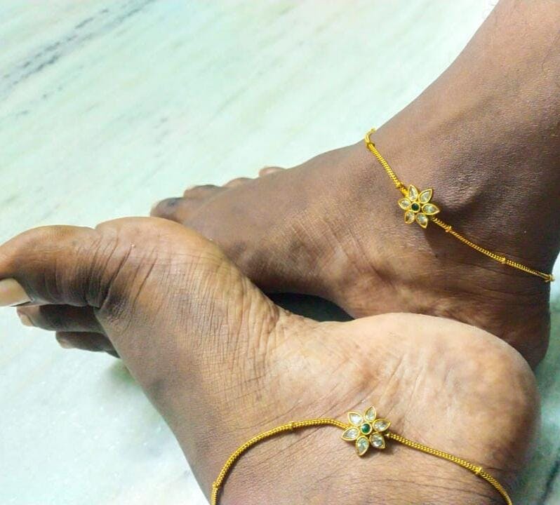 Sparkling AD Stone Anklets is a traditional Indian piece of jewellery that combines the intricate art of Jadau work.