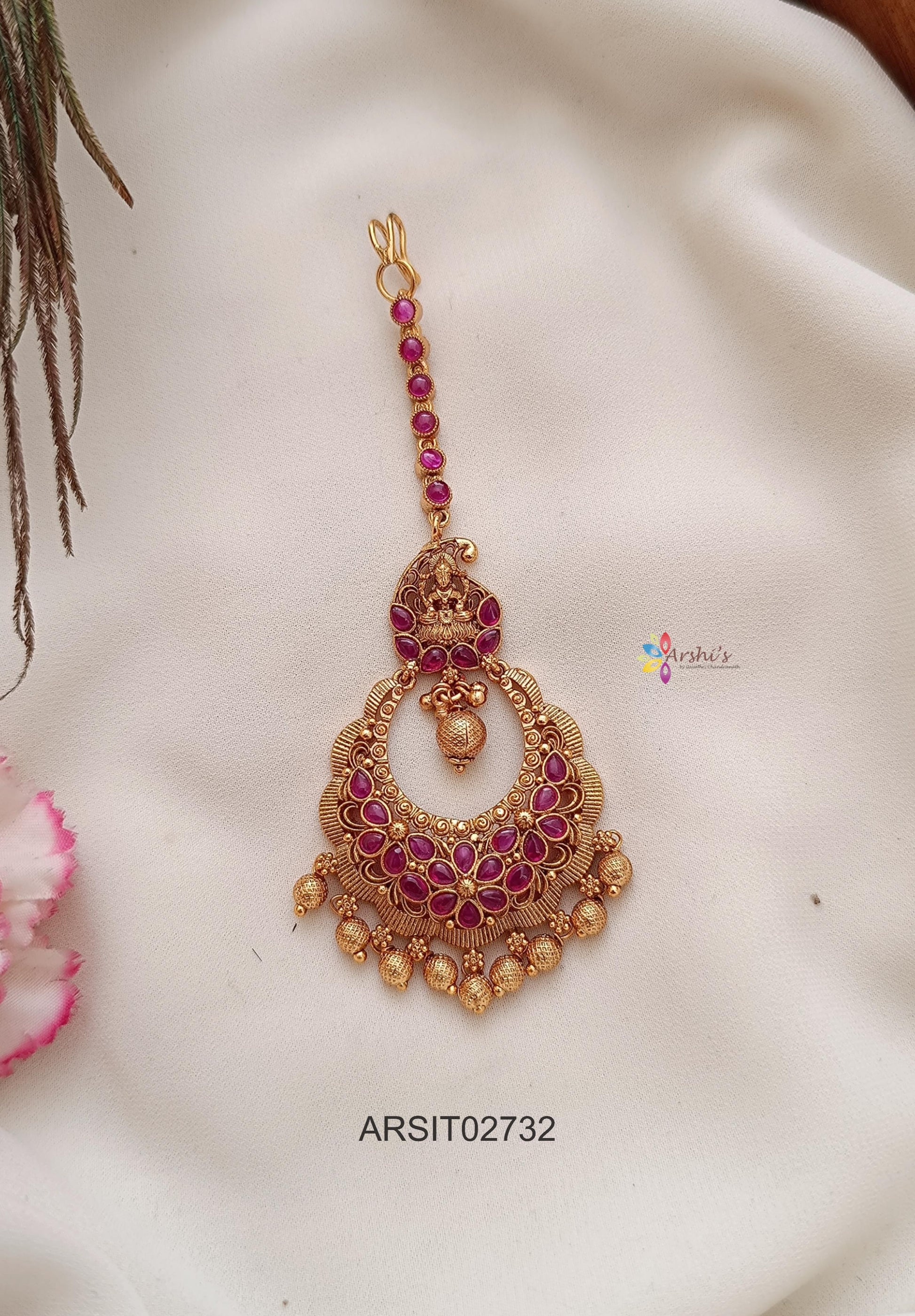 Enhance your traditional charm with this Temple Kemp Stone Maangtikka, featuring intricate temple-inspired designs adorned with vibrant red and green Kemp stones. Perfect for weddings, festivals, and cultural celebrations, it completes your ethnic ensemble beautifully.