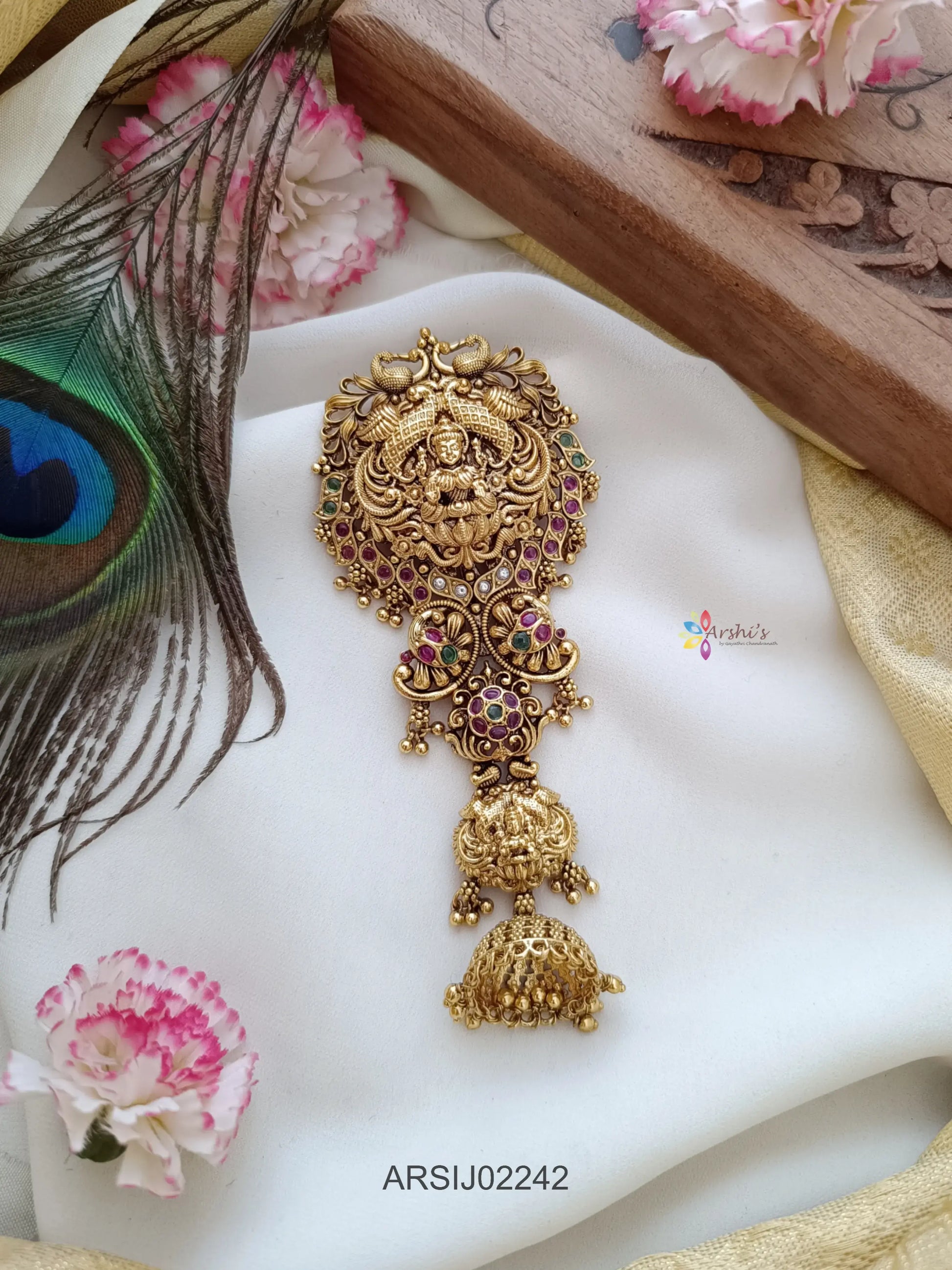 Temple Peacock Single Jhumki Hairbrooch