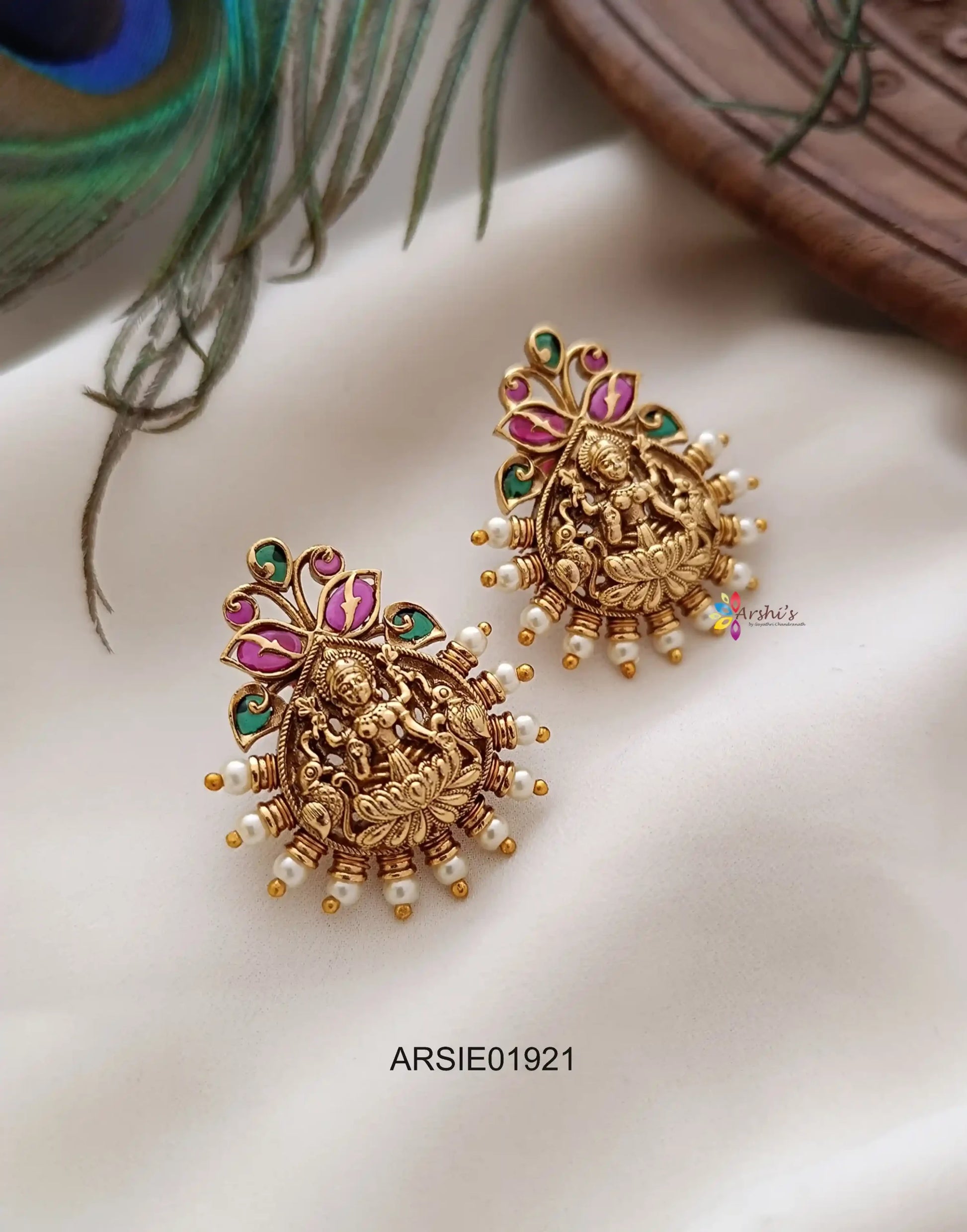 Add charm to your look with these Temple Pearl Ear Studs. Featuring intricate temple designs and elegant pearl drops, they are perfect for traditional outfits and special occasions. Stylish yet timeless!