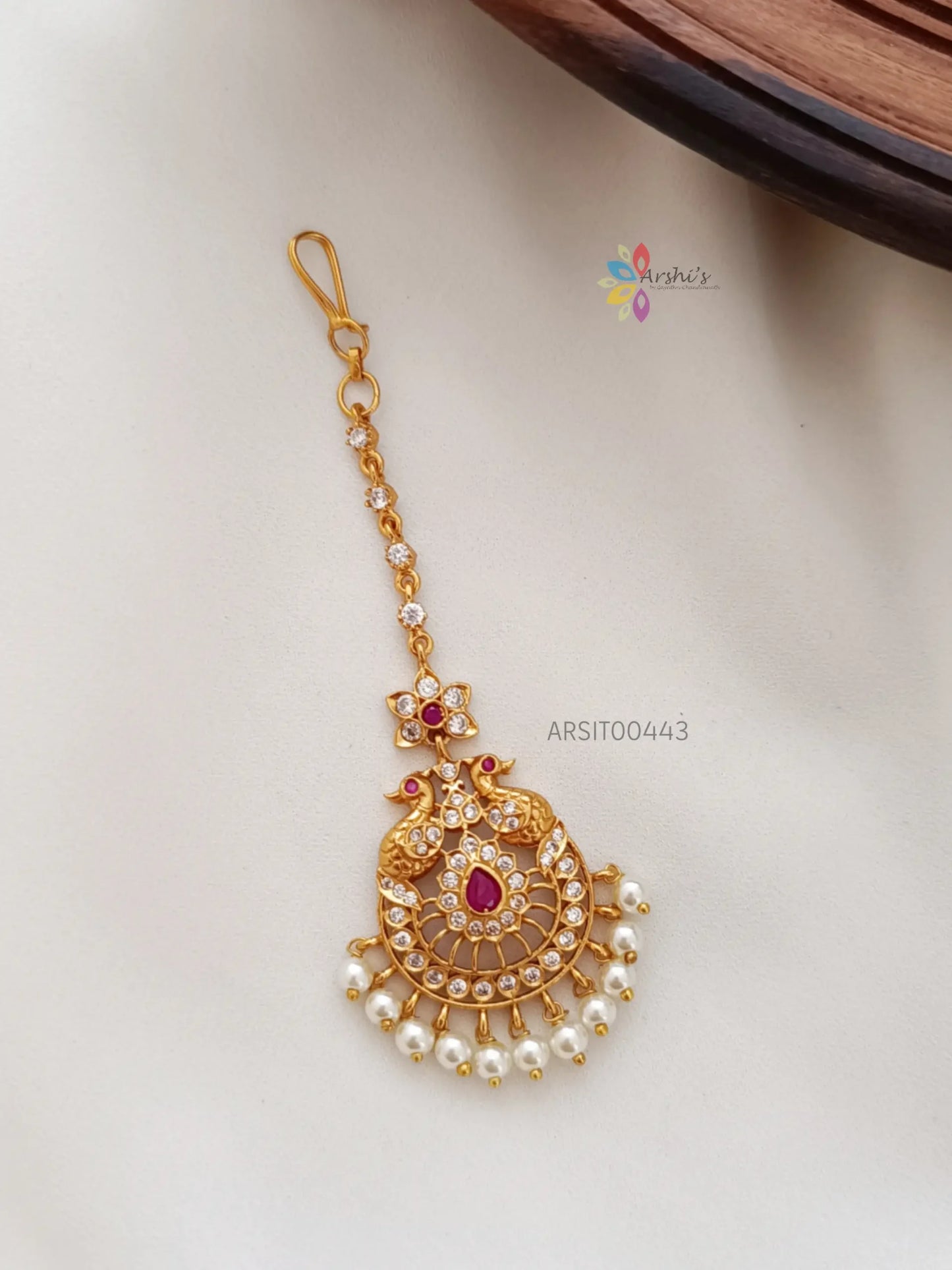 Beautiful white AD stone peacock design maang tikka perfect for all traditional attires.