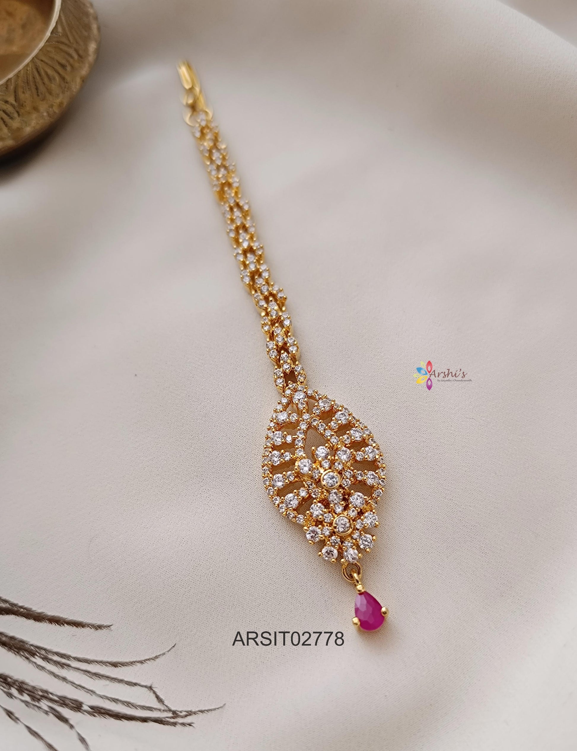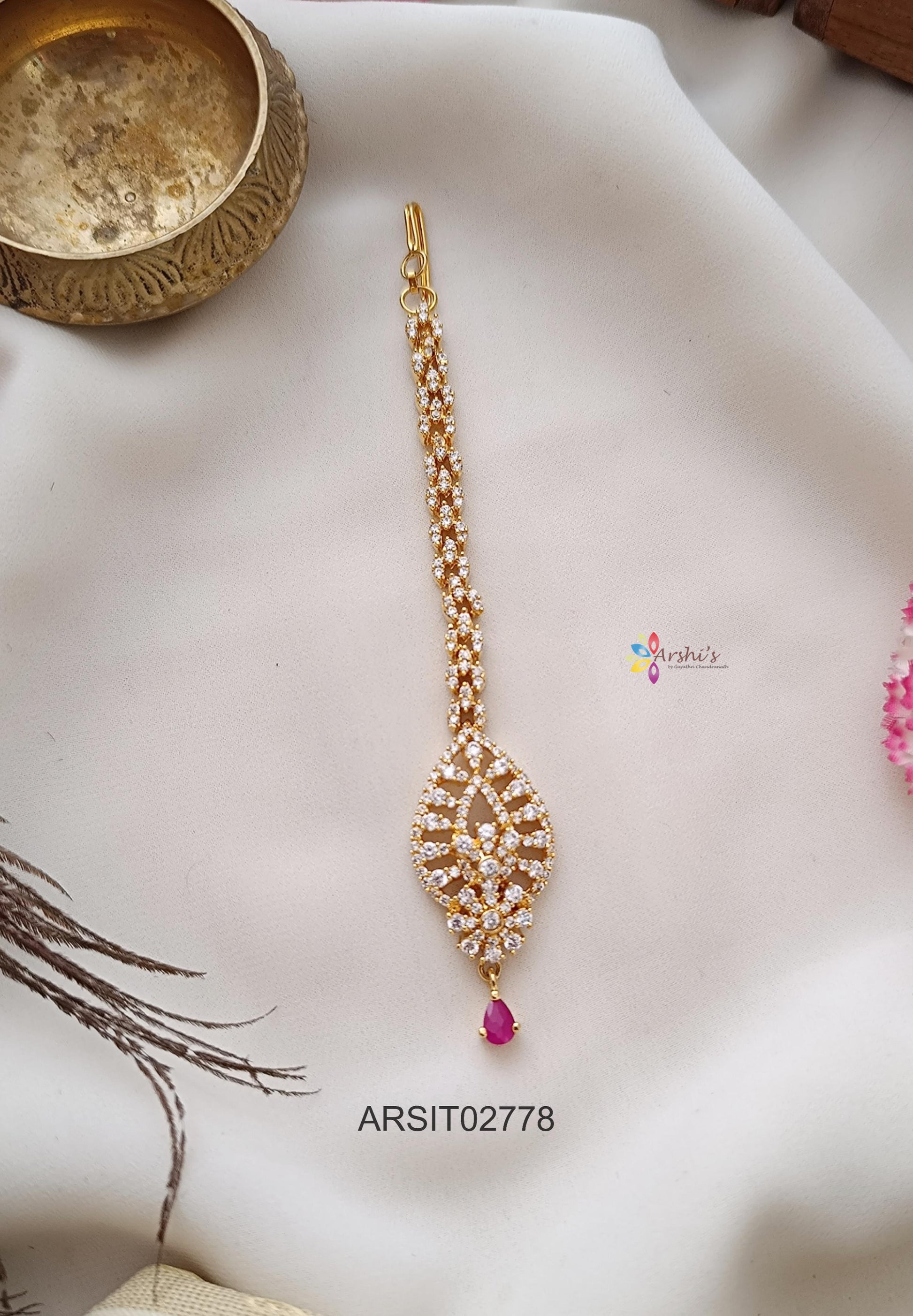 Elegant White Stone Maangtikka adorned with sparkling white stones in a classic traditional design. Perfect for weddings, festivals, and bridal wear, adding a touch of grace, charm, and timeless beauty to your ethnic look.